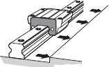 2.把LM軌道輕放在底座上后,不要完全鎖緊裝配螺 栓使LM軌道與安裝面輕輕地靠緊。(底座的橫向基 準(zhǔn)面要與LM軌道有標(biāo)記線的一側(cè)對上。) 注) 請使用干凈的裝配螺栓來固定LM滾動導(dǎo)軌。 同時,在將裝配螺栓插入LM軌道的安裝孔時,要先 確認(rèn)螺栓孔是否吻合 ,不吻合則會降低精度。 |