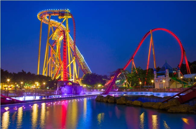 長(zhǎng)隆歡樂(lè)世界地處廣州番禺迎賓路,首期占地面積1000多畝,游樂(lè)設(shè)施近70項(xiàng)。歡樂(lè)世界引進(jìn)了瑞士、荷蘭、德國(guó)、意大利、美國(guó)等全球領(lǐng)先的游樂(lè)設(shè)備公司的設(shè)備,其中包括:THK導(dǎo)軌作為導(dǎo)向系統(tǒng)的垂直過(guò)山車(chē),十環(huán)過(guò)山車(chē)、摩托過(guò)山車(chē)、U型摩天滑板和超級(jí)水車(chē)大戰(zhàn)等。