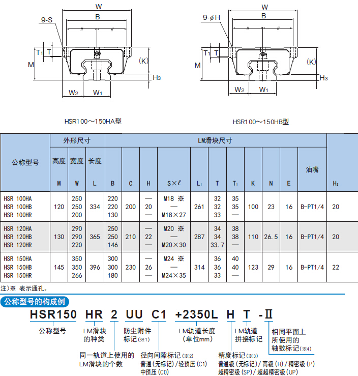 注) 長(zhǎng)度Max是指LM軌道的標(biāo)準(zhǔn)最大長(zhǎng)度。