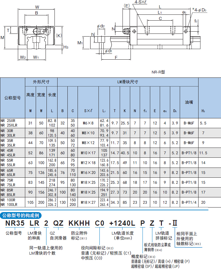 注) 側(cè)噴嘴用備用孔* 并未鉆通,這是為了防止異物進入LM滑塊內(nèi)。