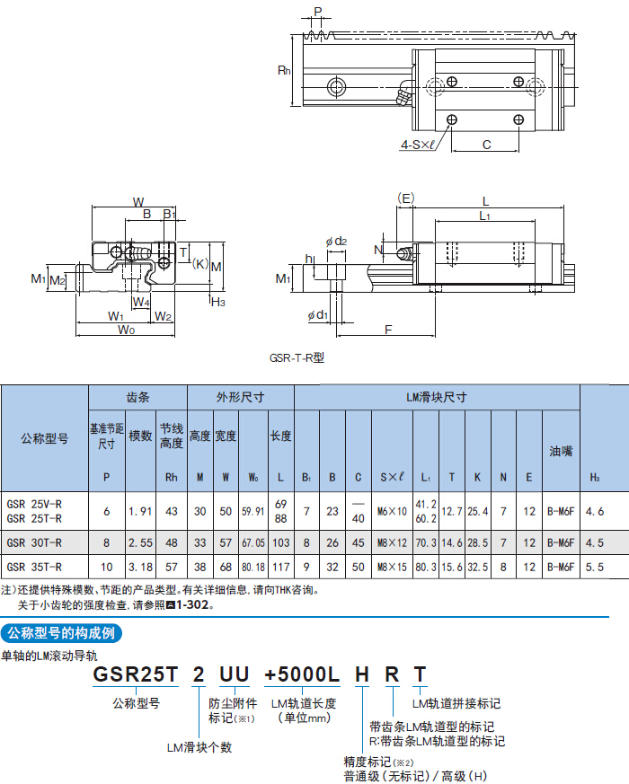 注) 還提供特殊模數(shù)、節(jié)距的產(chǎn)品類型。有關(guān)詳細(xì)信息,請向THK咨詢。