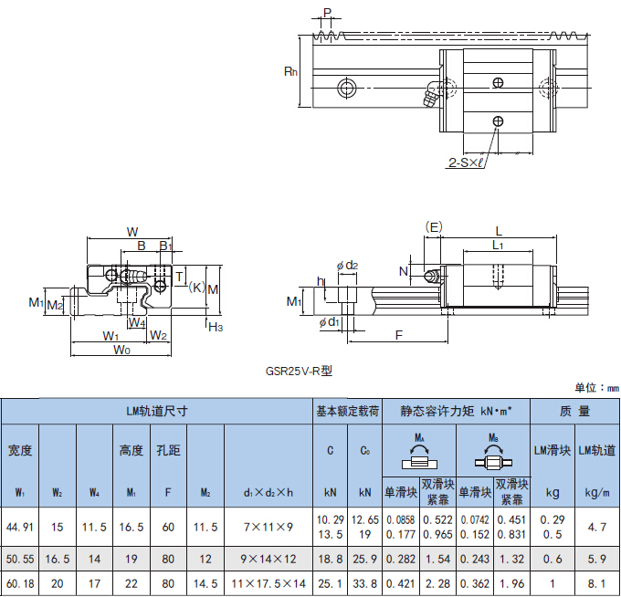 靜態(tài)容許力矩* 單滑塊∶使用1個LM滑塊的靜態(tài)容許力矩值
