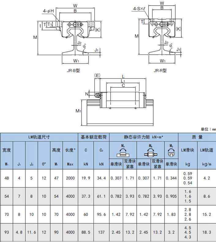靜態(tài)容許力矩*單滑塊∶使用1個LM滑塊的靜態(tài)容許力矩值