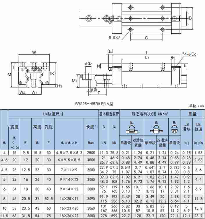 靜態(tài)容許力矩 * 單滑塊∶使用1個LM滑塊的靜態(tài)容許力矩值