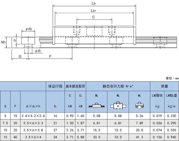 靜態(tài)容許力矩* ∶1個LM滑塊的靜態(tài)容許力矩值