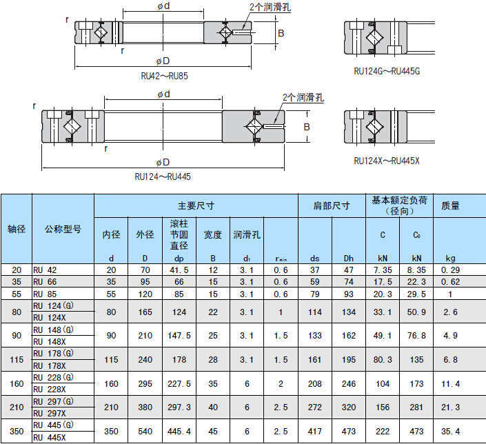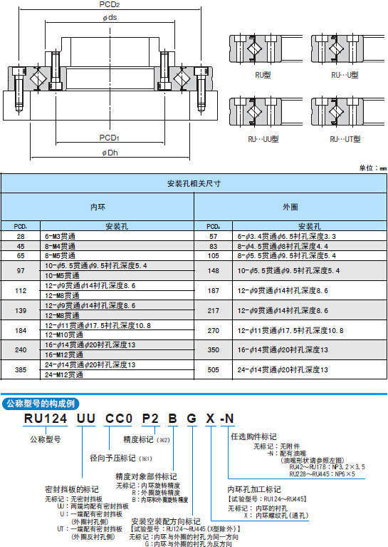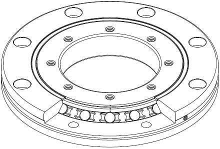 RU型由于已進(jìn)行了安裝孔的加工, 就不需要固定法蘭和 支撐座。 另外, 由于采用帶座的一體化內(nèi)外環(huán)結(jié)構(gòu),安裝 對(duì)性能幾乎沒有影響,因此能夠獲得穩(wěn)定的旋轉(zhuǎn)精度和扭 矩??梢詰?yīng)用在外圈和內(nèi)環(huán)旋轉(zhuǎn)的部分。 |