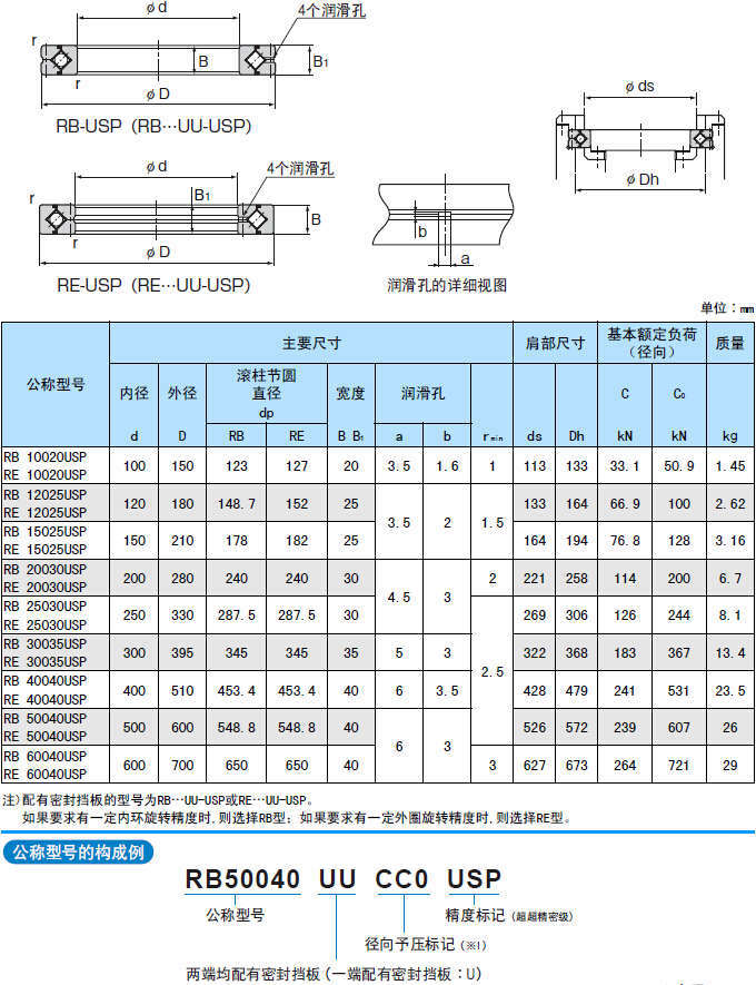 注)如果要求有一定內(nèi)環(huán)旋轉(zhuǎn)精度時(shí),則選擇RB型;如果要求有一定外圈旋轉(zhuǎn)精度時(shí),則選擇RE型。