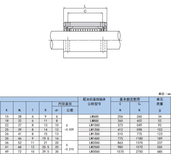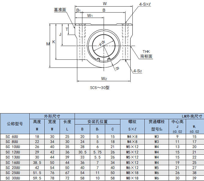 SC型是一套箱型單元,由標(biāo)準(zhǔn)型直線軸承裝入