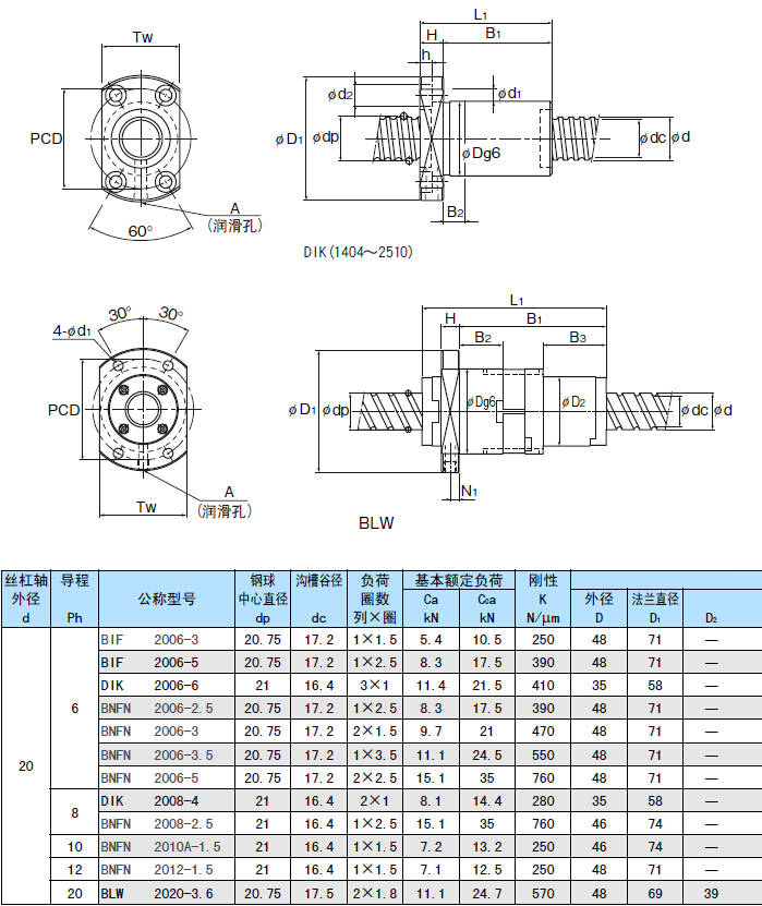 注)此型號(hào)有兩個(gè)螺母,可獲得沒有無效行程的高速進(jìn)給。