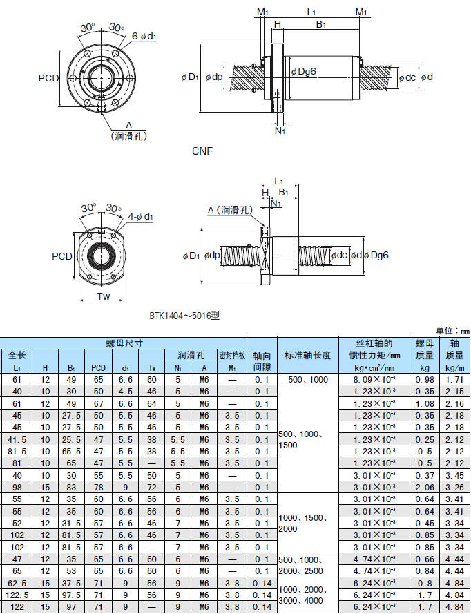 CNF型是大導(dǎo)程的4條負(fù)荷溝槽與長(zhǎng)螺母組合,因此可以得到較長(zhǎng)的工作壽命