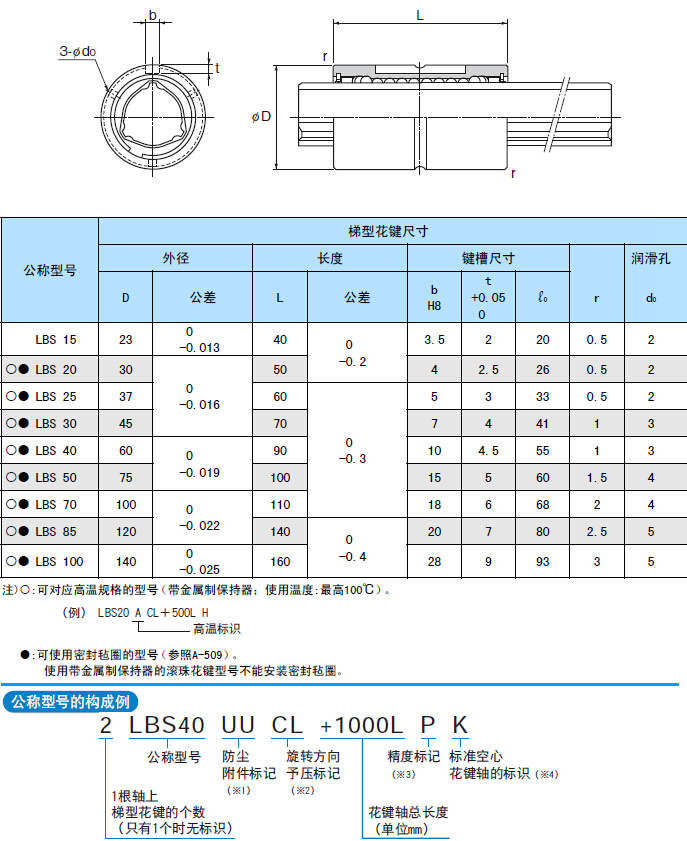LBS型梯型花鍵外徑是直筒形,作傳遞扭矩時(shí),將鍵敲入后使用,是最小型的型式。梯型花鍵外徑進(jìn)行了防炭加工