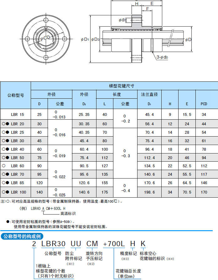 使用帶金屬制保持器的滾珠花鍵型號(hào)不能安裝密封氈圈