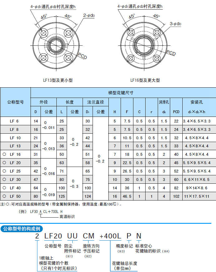 注)如上表所示,MA.1為使用1個梯型花鍵時的軸向容許力矩值。