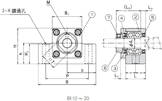 支撐單元裝有經(jīng)預壓調(diào)整的JIS5 級的角接觸球軸承。特別是在EK/EF的超小型式中,裝有為超小型滾珠螺桿所開發(fā)的接觸角45°的超小型角接觸球軸承,能獲得高剛性?高精度的穩(wěn)定的回轉(zhuǎn)性能.