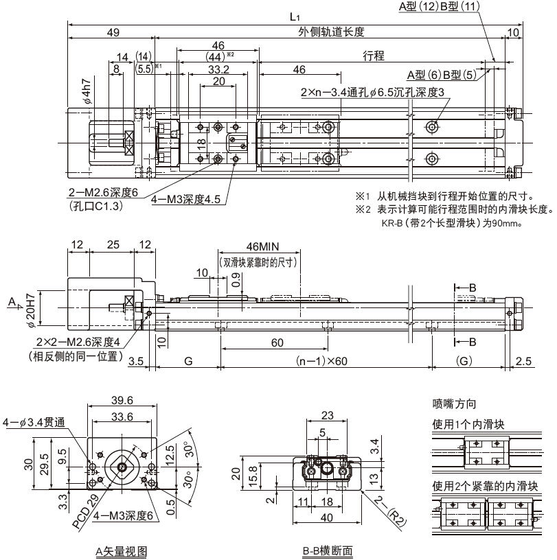 SKR20□□A型(帶1個長滑塊) SKR20□□B型(帶2個長滑塊)