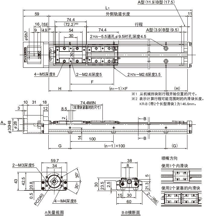 KR30H□□A型(帶1個長滑塊)