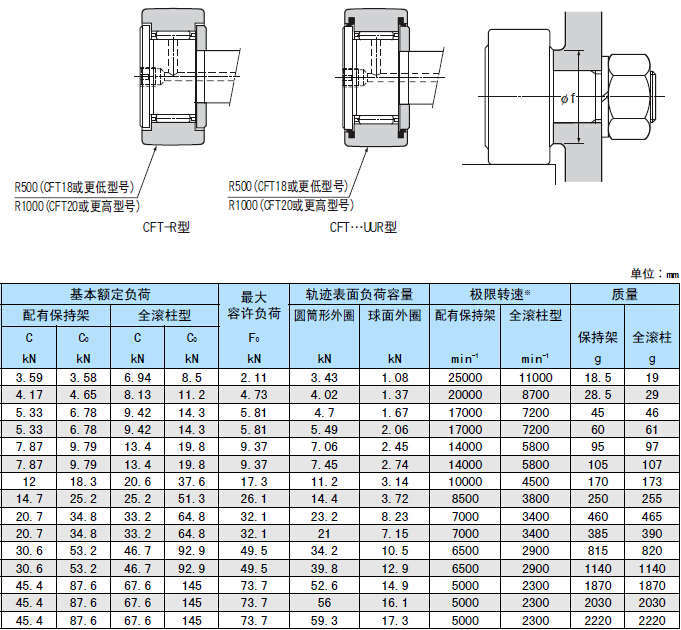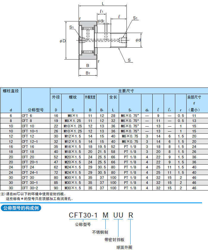 CFT型是在普通型滾針凸輪導(dǎo)向器的螺柱頭和螺紋