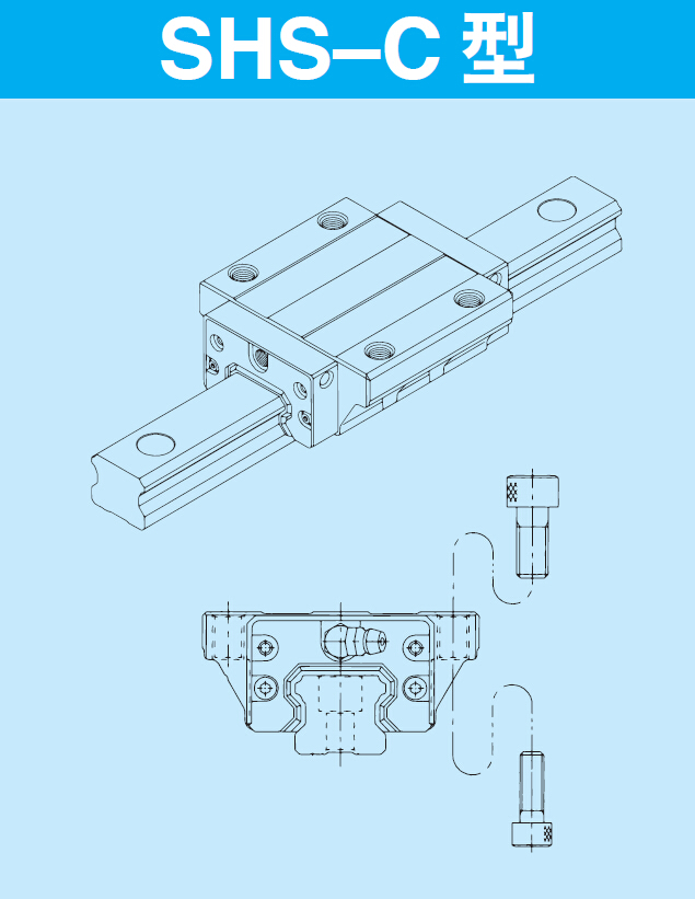 因在LM滑塊的法蘭部加工了螺紋孔,很適合於組合式安 SHS-LC型與SHS-C型具有相同