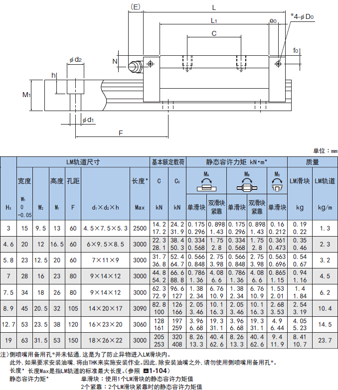 的螺紋孔。這種型號(hào)的導(dǎo)軌適用於 加了額定負(fù)荷,適用於超重負(fù)荷用。