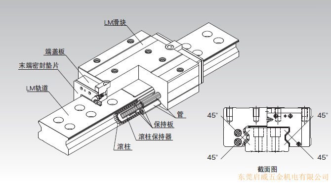 通過(guò)滾柱保持器使?jié)L柱被均勻分隔排列進(jìn)行循環(huán),因此可以防止滑塊到達(dá)載荷區(qū)時(shí)的滾柱偏移,還能最大程度地減少滾動(dòng)阻力的摩擦變大,從而實(shí)現(xiàn)平滑而穩(wěn)定的運(yùn)動(dòng)。