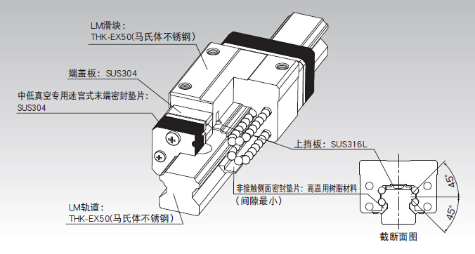 中低真空用LM滾動(dòng)導(dǎo)軌所使用的油脂與普通真空用油脂相比,其滾動(dòng)阻力低,運(yùn)動(dòng)穩(wěn)定。